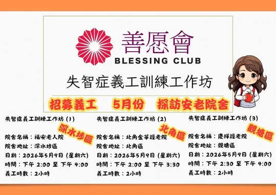 招募義工 觀塘區 失智症義工訓練工作坊 探訪安老院舍 (4月份)